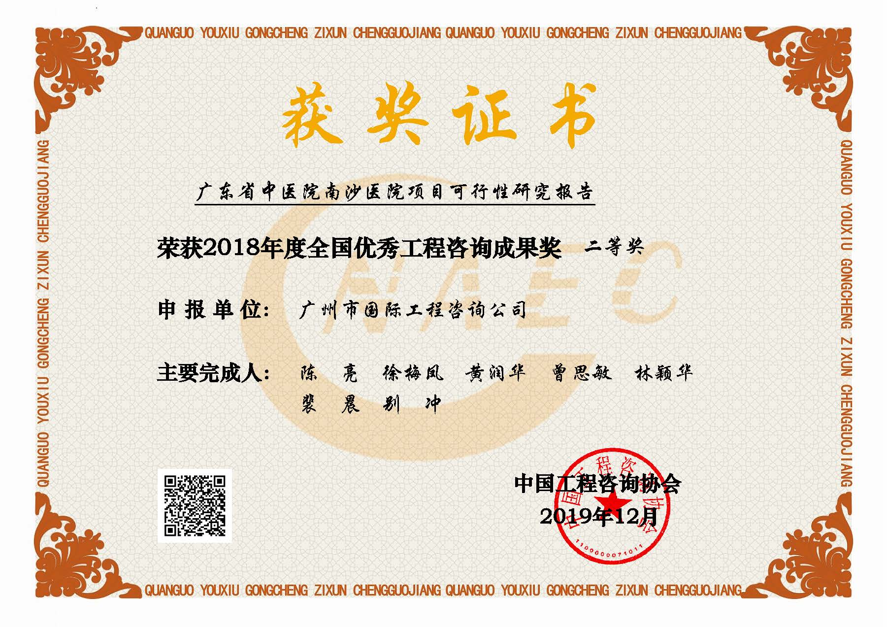 2022-2023年度廣東省優(yōu)秀工程咨詢(科技)成果三等獎(廣東省粵...