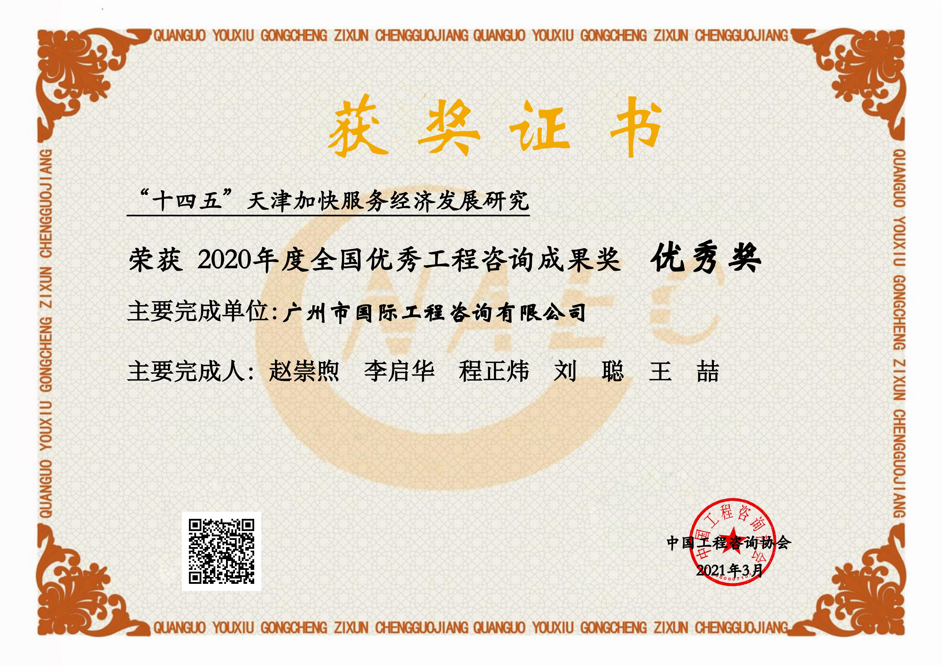 2022-2023年度廣東省優(yōu)秀工程咨詢(科技)成果三等獎(廣州市水...