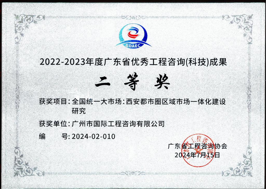 2022-2023年度廣東省優(yōu)秀工程咨詢(科技)成果二等獎(西安都市...