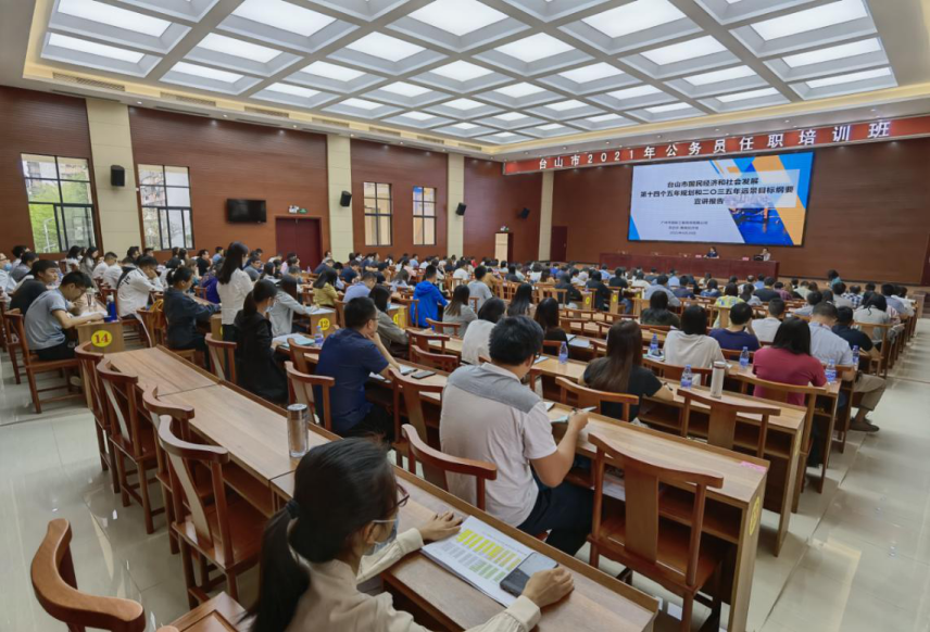 本次專題培訓活動的參會人員為臺山市2021年公務員任職培訓班的近200名學員,主要包括臺山市各鎮(街)、市直黨政群機關和參照公務員法管理事業單位中新提拔,且尚未參加過往年任職培訓的股級中層干部。我司2020年承擔了《規劃綱要》的研究編制工作,成果得到業主臺山市發改局高度認可,并推薦為臺山市委黨校開展相關宣講培訓。